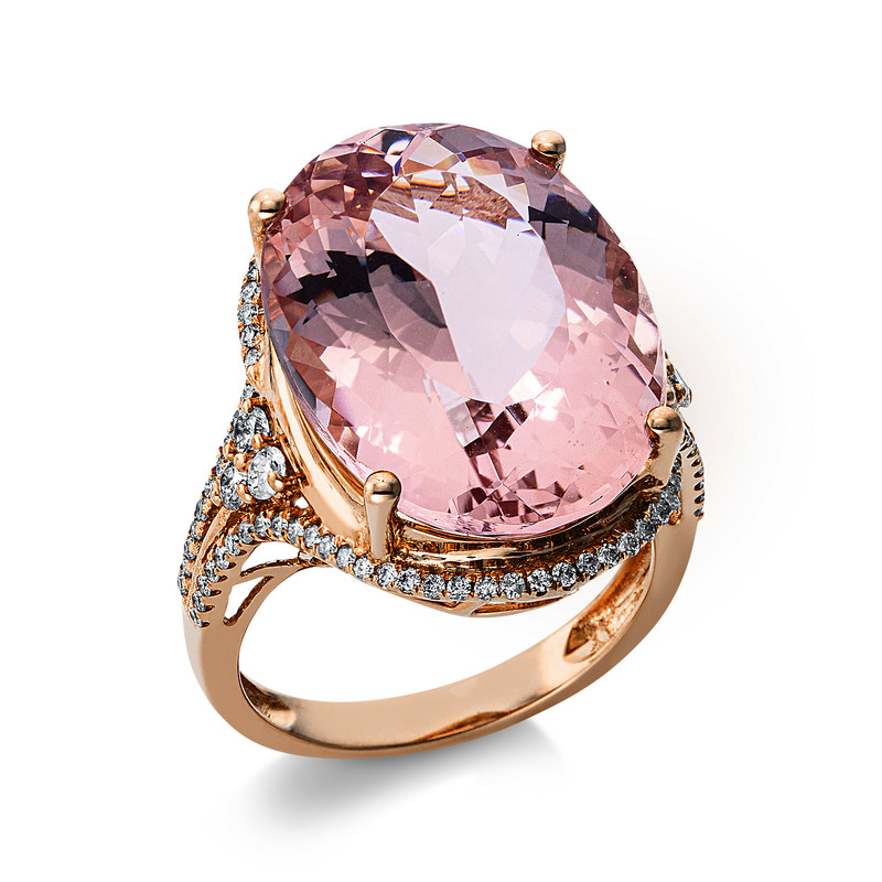 Ring 4er-Krappe 14 kt RG, 90 Brillanten 0,54 ct, TW-si, 1 Morganit 17,63 ct pink, Weite:54