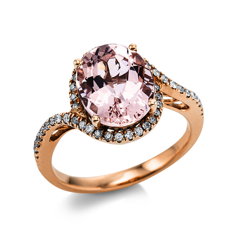 Ring 4er-Krappe 14 kt RG, 46 Brillanten 0,23 ct, TW-si, 1 Morganit 2,71 ct rosé, Weite:54