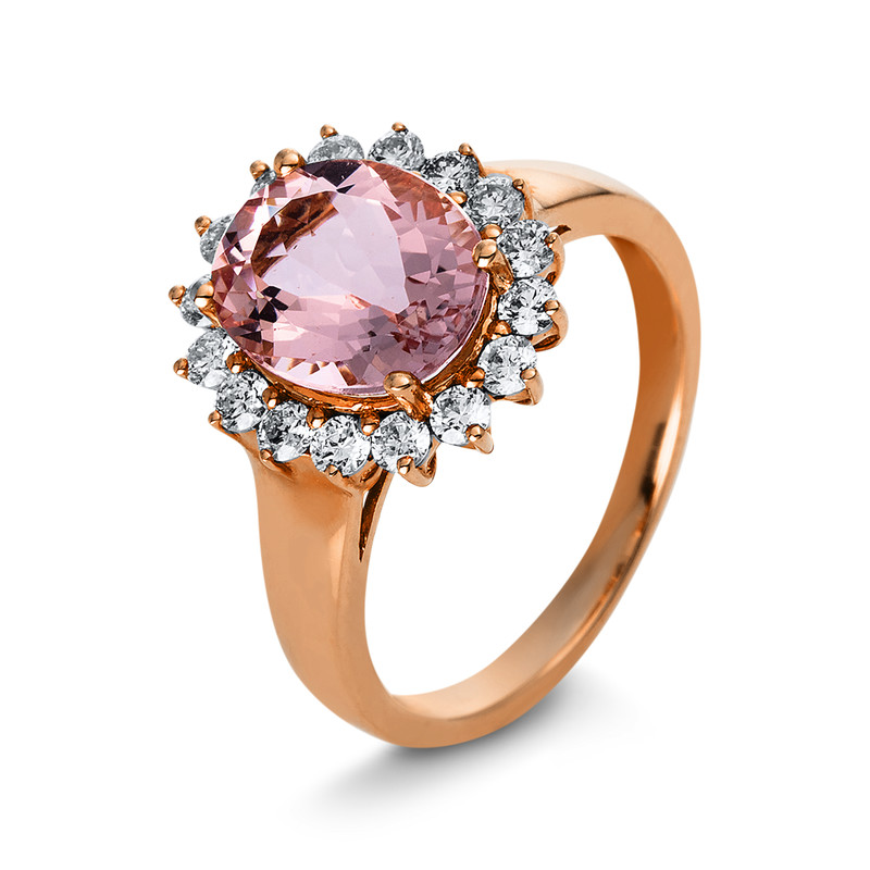 Ring 4er-Krappe 14 kt RG, 16 Brillanten 0,56 ct, TW-si, 1 Morganit 2,53 ct rosé, Weite:54