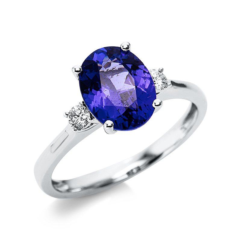 Ring 4er-Krappe 14 kt WG, 2 Brillanten 0,14 ct, TW-si, 1 Tansanit 2,39 ct blau, Weite:54