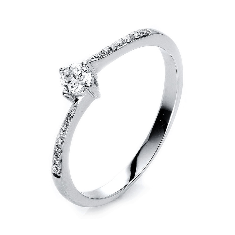 Ring 4er-Krappe 14 kt WG, 1 Brill. 0,10 ct, TW-si, 14 Brillanten 0,05 ct, TW-si, Weite:54