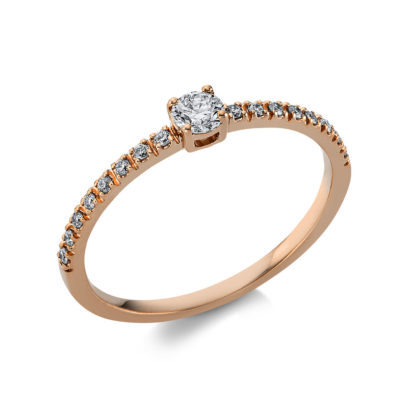 Ring 4er-Krappe 18 kt RG, 1 Brill. 0,19 ct, TW-si, 14 Brillanten 0,10 ct, TW-si, Weite:54