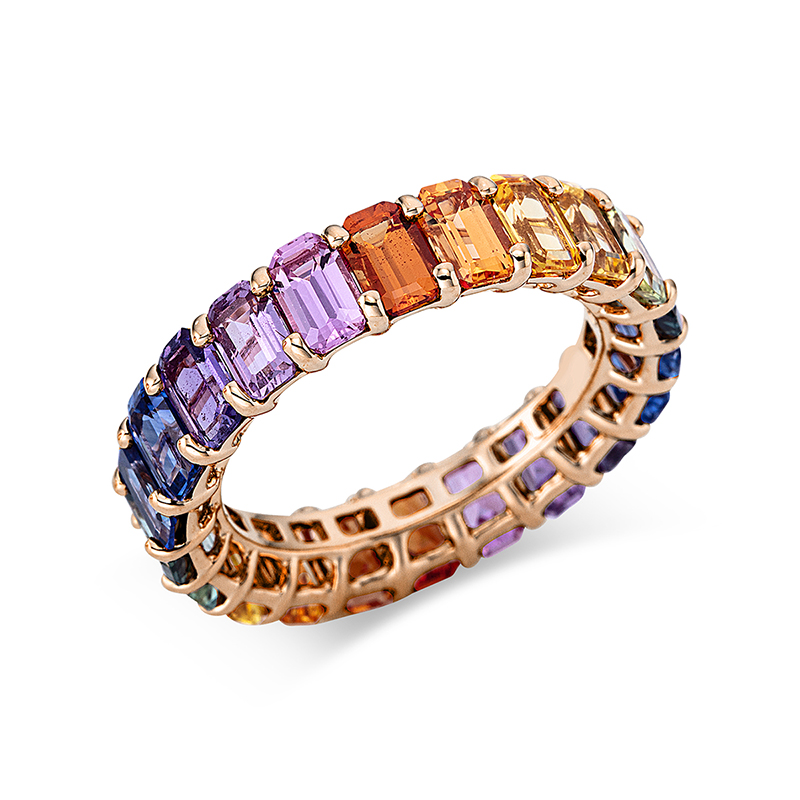 Ring 4er-Krappe 18 kt RG, 22 Saphire 7,12 ct fancy, Weite:53