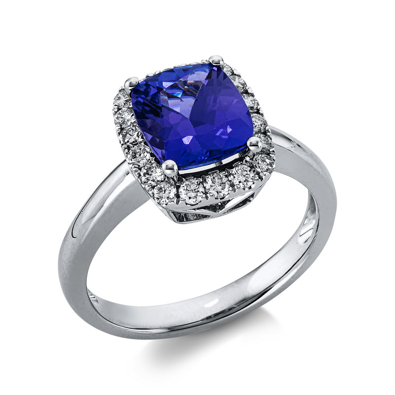 Ring 4er-Krappe 18 kt WG, 18 Brillanten 0,36 ct, TW-si, 1 Tansanit 2,32 ct blau, Weite:54
