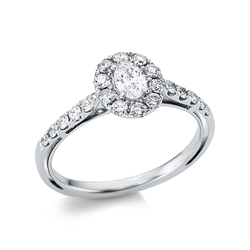 Ring 4er-Krappe 18 kt WG, 1 Oval 0,22 ct, TW-si, 20 Brillanten 0,46 ct, TW-si, Weite:54