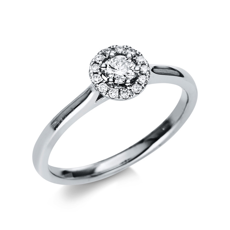 Ring 4er-Krappe 18 kt WG, 1 Brill. 0,15 ct, TW-si, 13 Brillanten 0,08 ct, TW-si, Weite:53