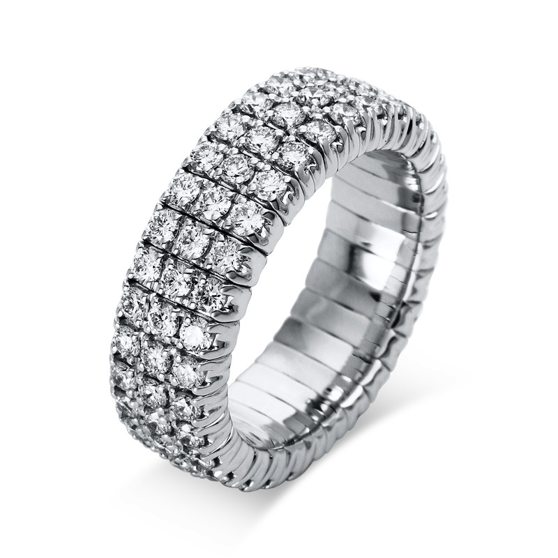 Ring 4er-Krappe 18 kt WG, Flex-Band, variabel, rhodinier, 90 Brillanten 2,39 ct, TW-si, Weite:54