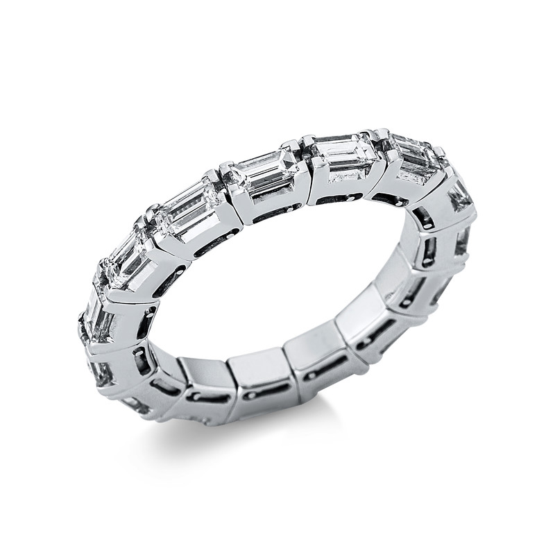 Ring 4er-Krappe 18 kt WG, Flex-Band, variabel, rhodinier, 15 Baguette 1,98 ct, TW-si, B:3,1 mm, Weite:53