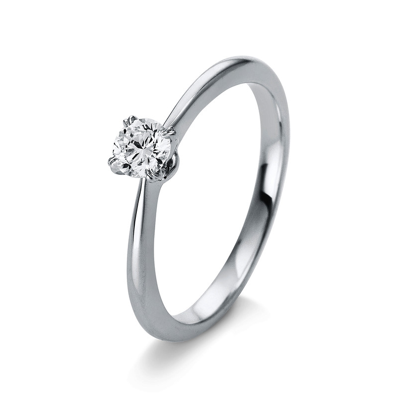 Ring 4er-Krappe 18 kt WG+P950, 1 Brill. 0,25 ct, TW-si, H:3,9 mm, B:3,9 mm, Weite:53