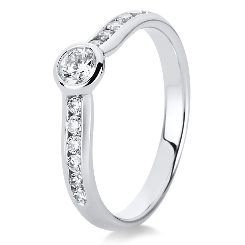 Ring Zarge 14 kt WG, 12 Brillanten 0,22 ct, TW-si, 1 Brill. 0,22 ct, TW-si, B:2,9 mm, Weite:54