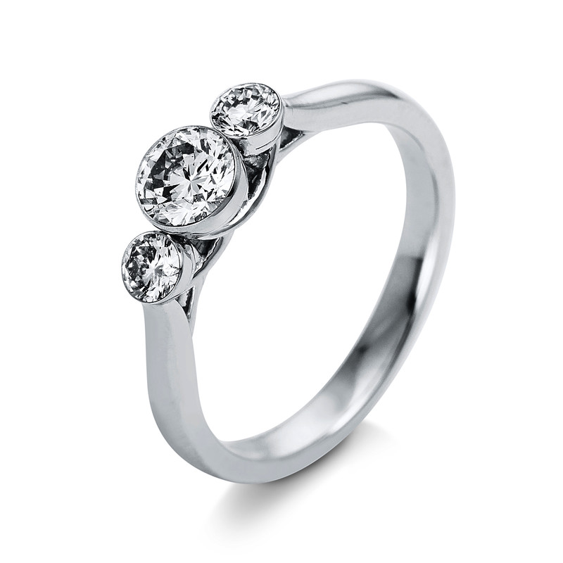 Ring Zarge 14 kt WG, 3 Brillanten 0,76 ct, TW-si, H:11,2 mm, B:5,2 mm, S:2,3 mm, Weite:54