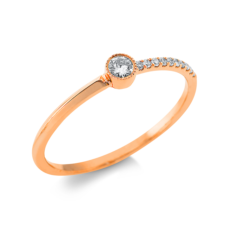 Ring Zarge 18 kt RG, 1 Brill. 0,07 ct, TW-pi, 10 Diamanten 0,04 ct, W-si, Weite:53