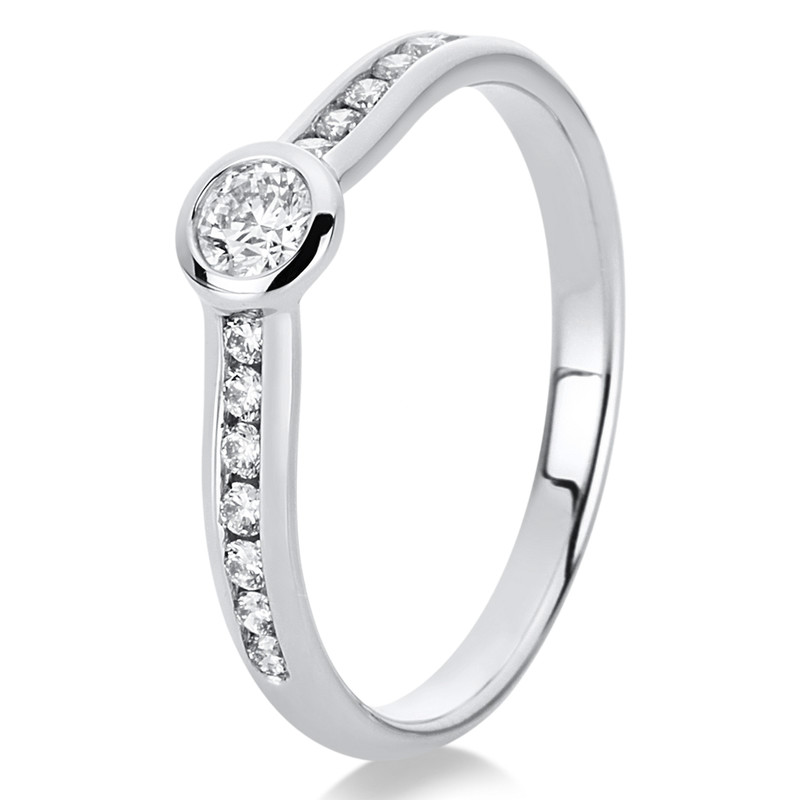 Ring Zarge 18 kt WG, 1 Brill. 0,14 ct, TW-si, 14 Brillanten 0,18 ct, TW-si, Weite:54